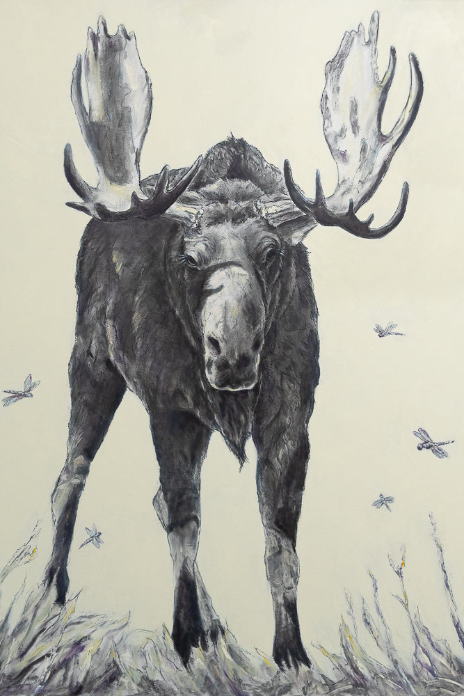 Gallery wrapped reproduction of the original Shoshone and Dragonflies charcoal and oil paint drawing.